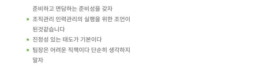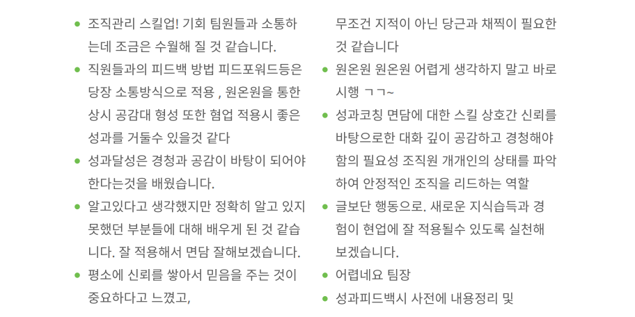 평가면담스킬 / 코칭피드백스킬 / 변화관리 / 동기부여 / 권한위임 / 긍정심리 강점리더십