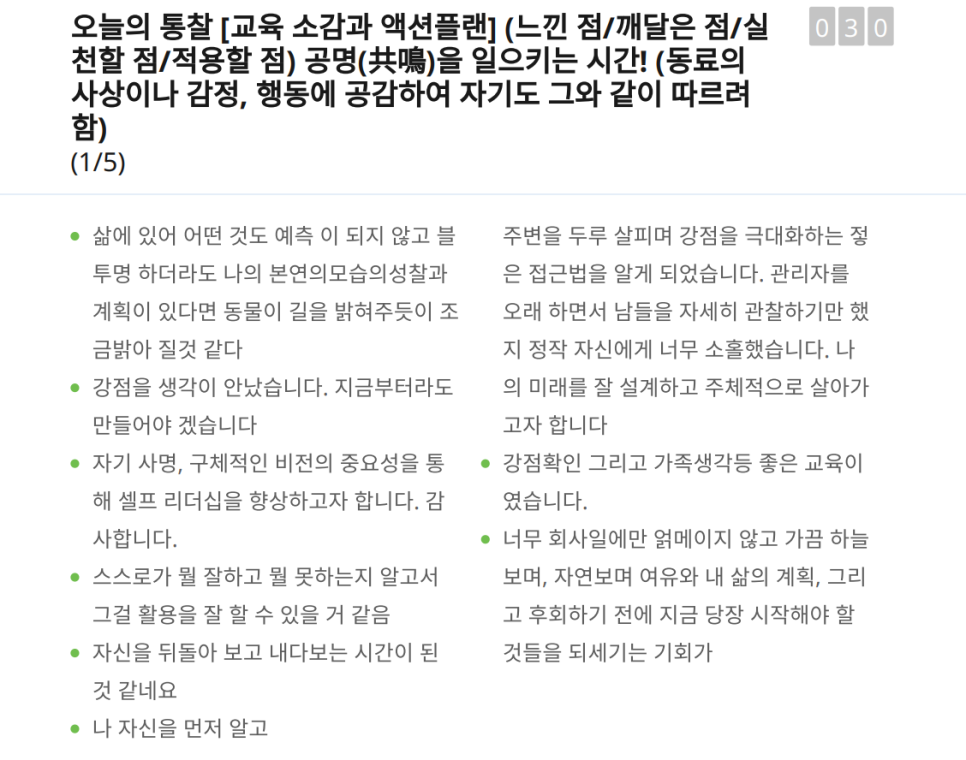 이런 구체적인 선언들이 모여 교육장은 새로운 시작을 향한 에너지로 가득 찼습니다.