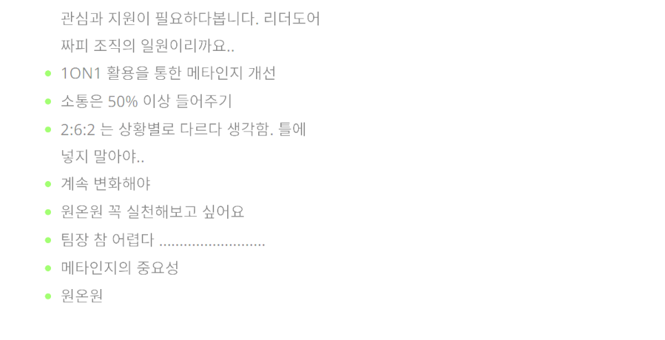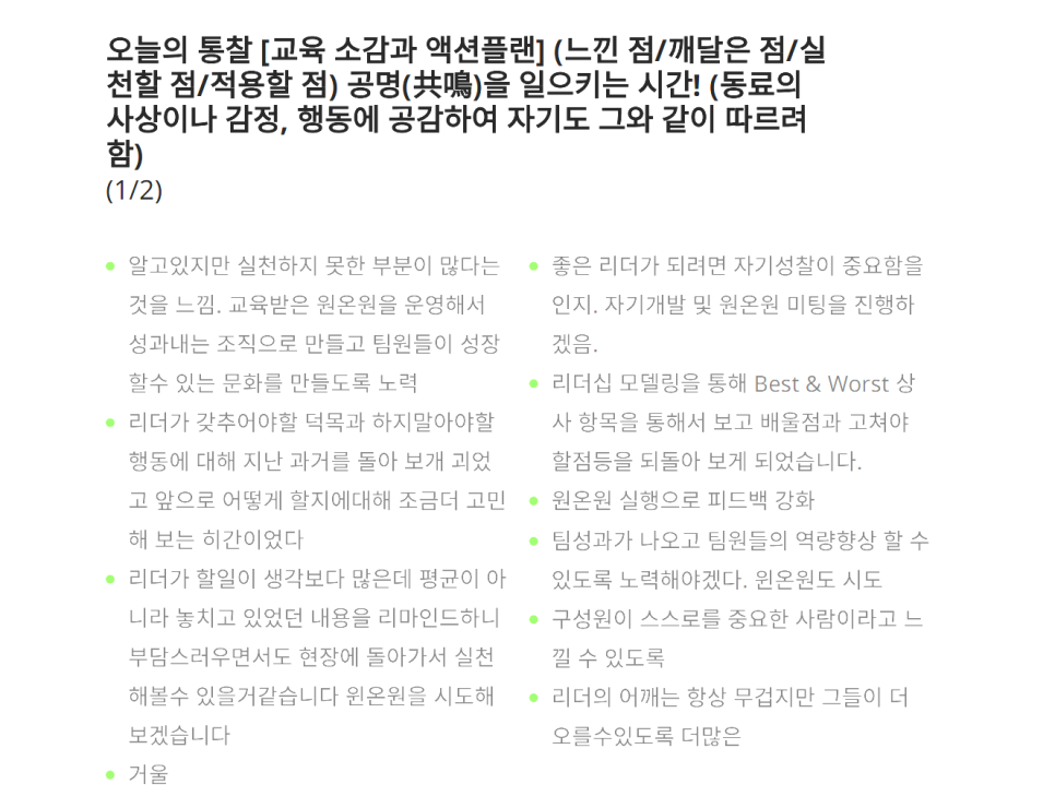 앞으로도 여러분들이 현장에서 진정한 리더십을 발휘하시며, 팀원들과 함께 성장하고 성과를 창출해나가시길 진심으로 응원하겠습니다. 언제든 필요하시면 연락 주세요. 함께 고민하고 해답을 찾아가겠습니다.