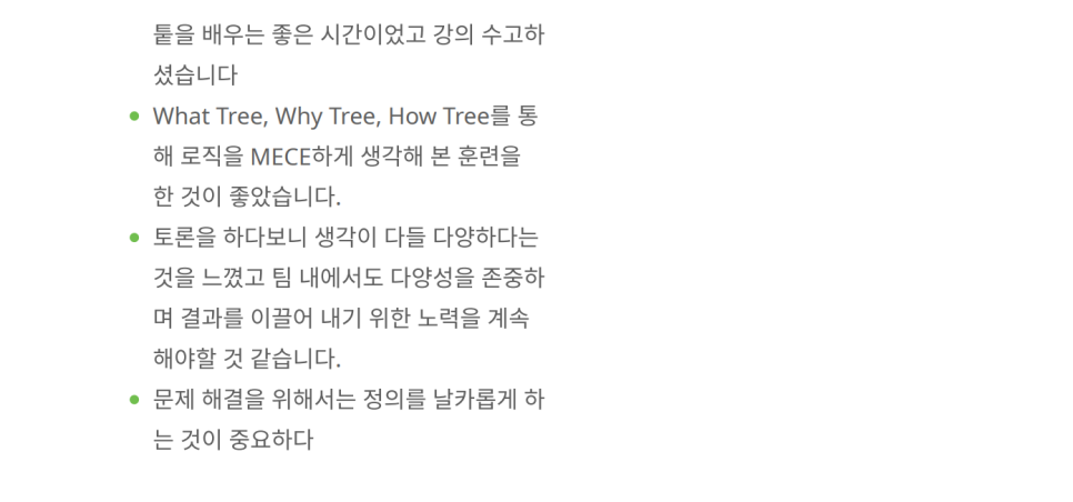 MECE와 로직트리로 조직의 실제 문제를 해결하는 워크숍 현장