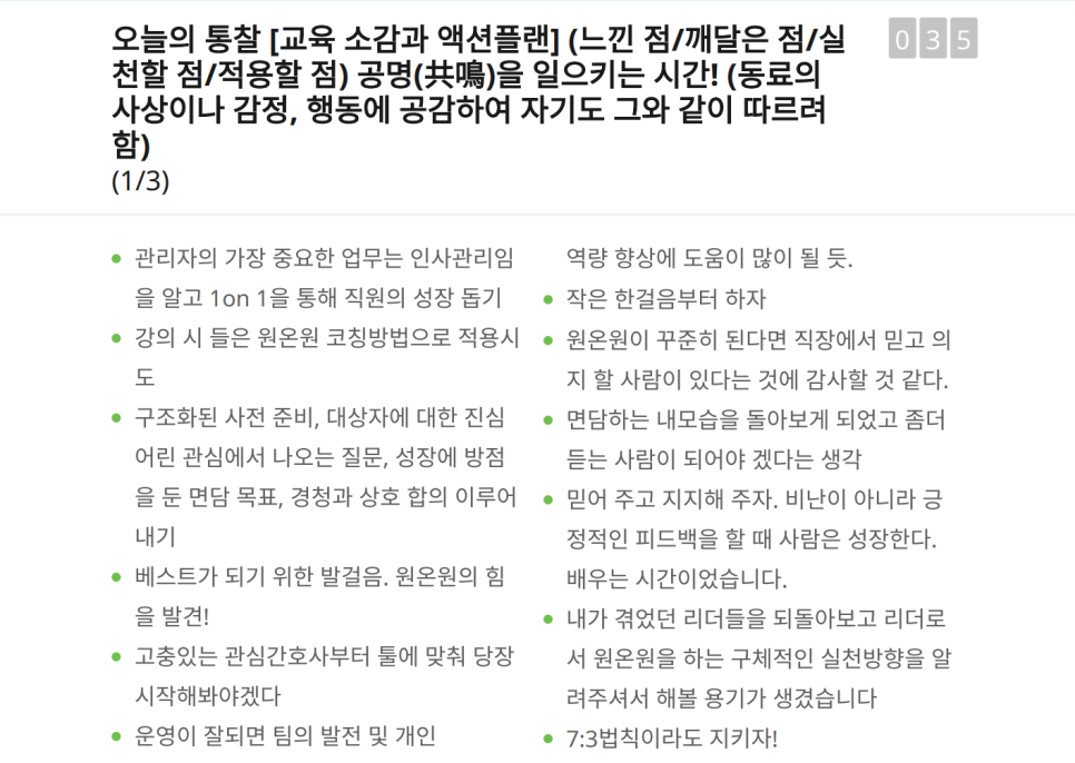 이론만으로는 부족합니다. 오늘 교육에서는 간호 리더들이 현장에서 바로 적용할 수 있는 실천 솔루션을 집중적으로 다뤘습니다. 원온원을 세팅하는 방법부터 주기 설정, 아젠다 구성, 템플릿 활용까지 구체적인 가이드를 제공했습니다.