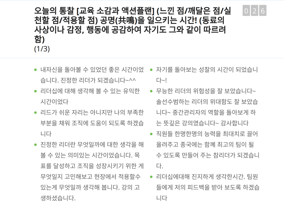 이런 감동적인 피드백을 받을 때마다 저 유경철은 큰 보람을 느낍니다. 부드럽고 유연한 진행과 사례 중심의 재미있는 설명 덕분에 시간이 가는 줄 모르고 몰입했다는 말씀은 저에게 최고의 칭찬입니다. 리더들이 함께 토의하며 '팀장으로서 리더십을 어떻게 발휘해야 할지'에 대한 명확한 인사이트와 팁을 얻어 가셨다는 점이 가장 기쁩니다.
