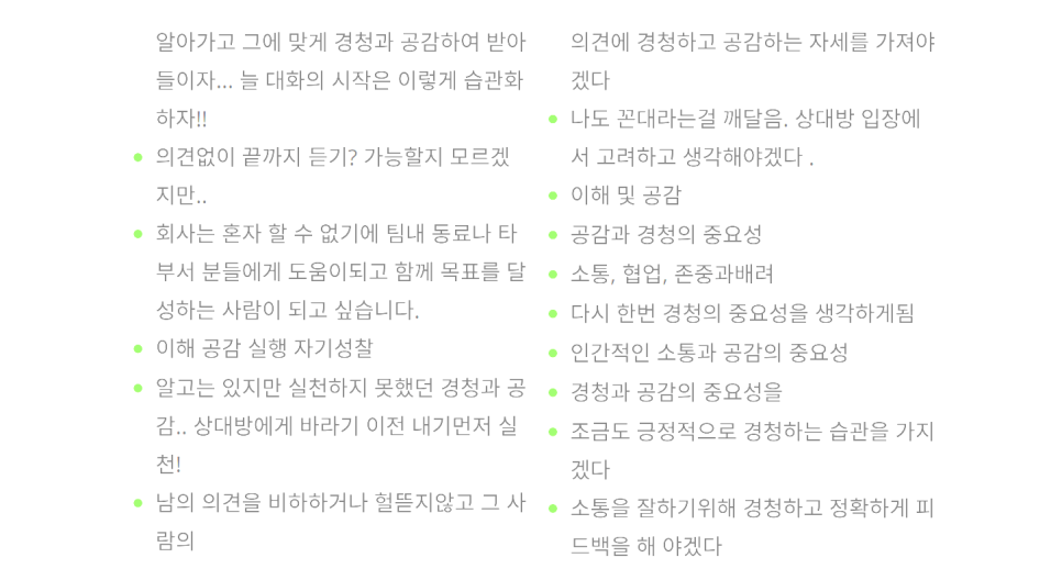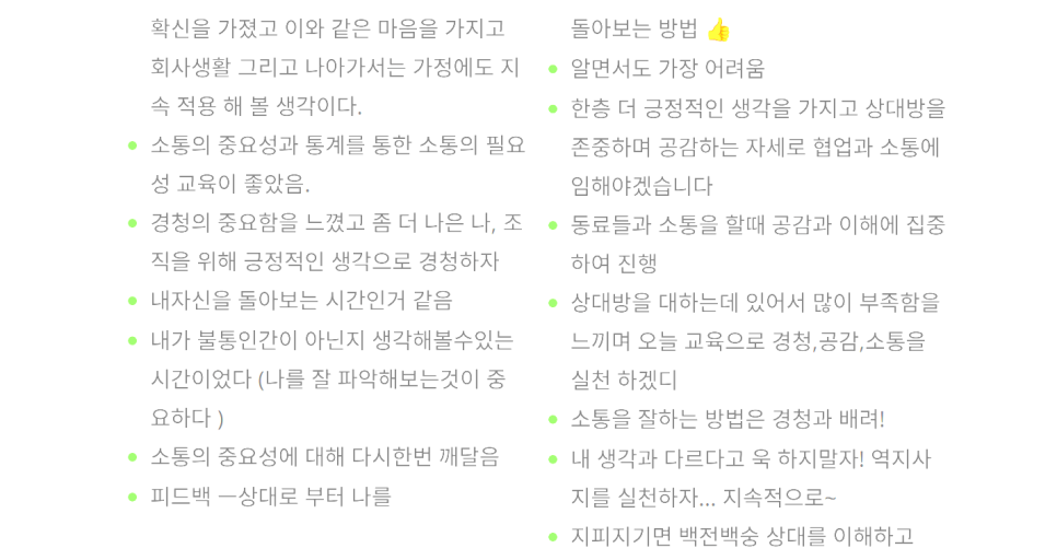특히 ‘경청과 공감’ 파트에서는 많은 분들이 표정이 바뀌며 메모를 빠르게 하셨습니다.