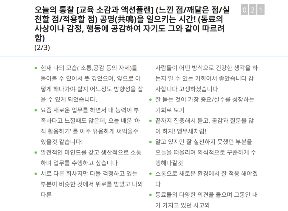 단순히 "말을 잘하자"는 구호에 그치지 않고, 현장에서 즉시 적용 가능한 4가지 핵심 솔루션을 제공했습니다. 특히 '경청'의 본질에 대해 깊이 있게 나누었는데요. 상대의 목소리(말)를 넘어 그 이면의 감정과 본심까지 알아주는 경청이 새로운 조직에서 관계를 형성하는 데 얼마나 강력한 도구가 되는지를 강조했습니다. 짧은 시간이었지만, 교육생분들이 서로의 눈을 맞추며 경청의 가치를 체험하는 모습은 무척 인상적이었습니다.