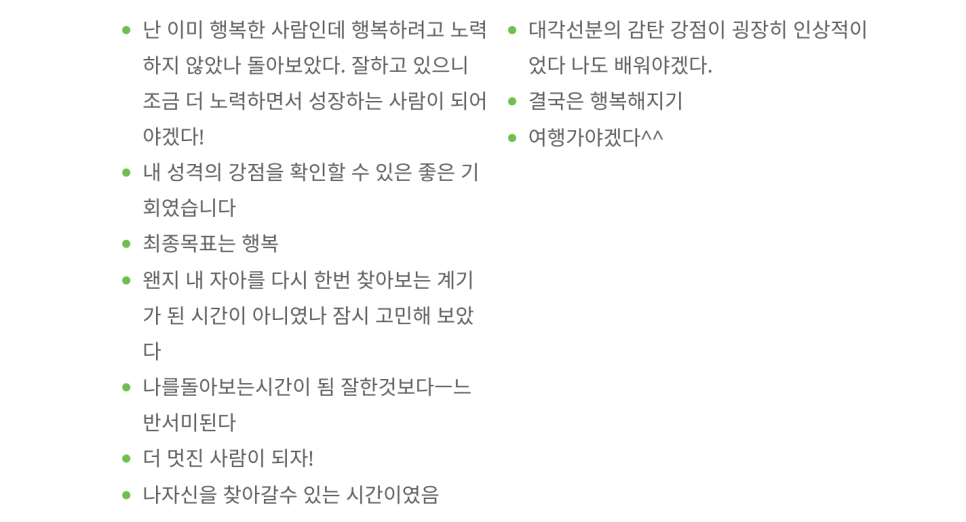 이번 특강의 하이라이트는 '강점 진단을 통한 미래 설계'였습니다. 우리는 흔히 약점을 보완하는 데 많은 시간을 쏟지만, 탁월한 성과는 오직 강점을 활용할 때만 나타납니다. 강점 진단을 통해 각자의 대표 강점 5개를 선정하고, 그 강점이 발휘되었던 순간들을 복기하며 '강점 스토리'를 작성해 보았습니다.