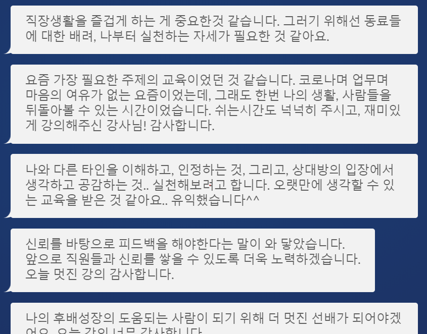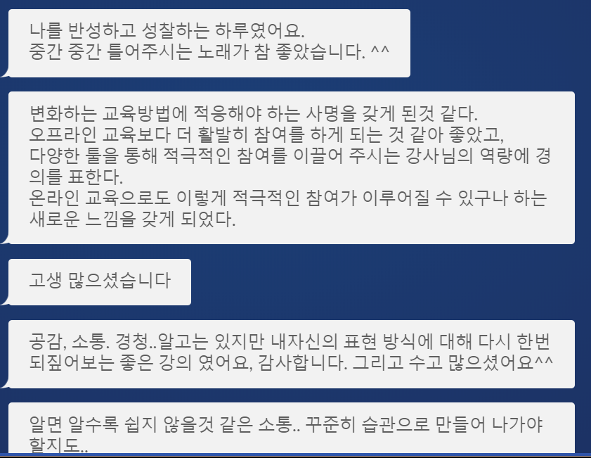 주셨습니다. 교육생들도 교육중에 오프라인교육보다 훨씬 밀도있고