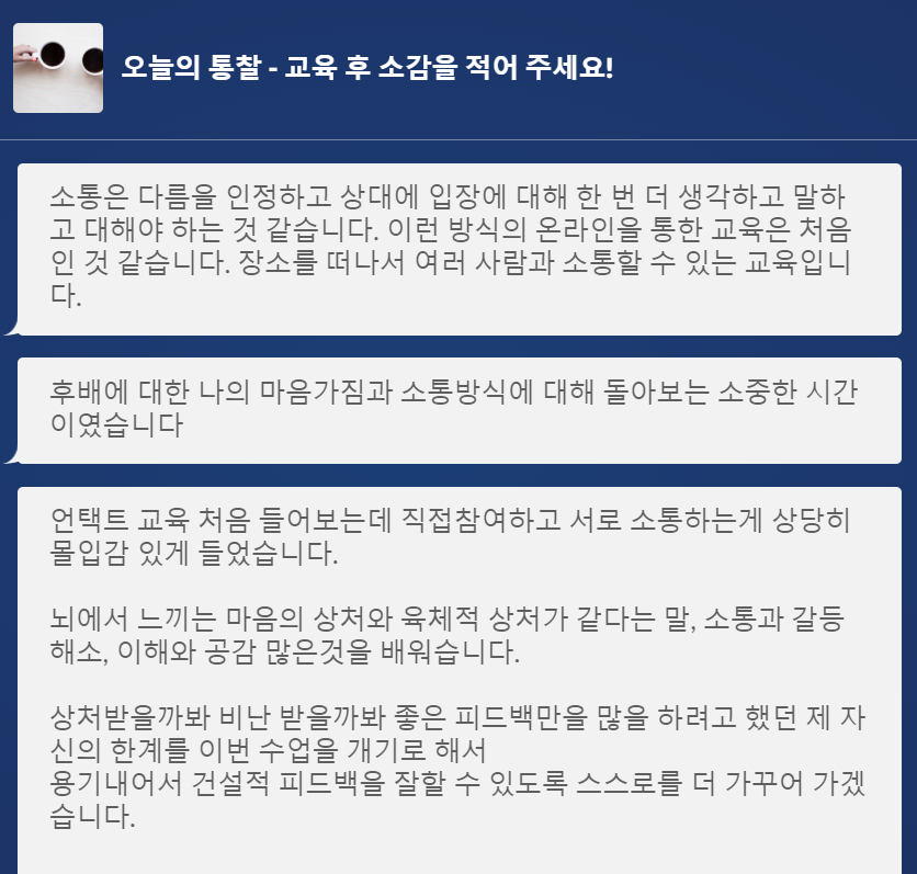 그러나 실제 교육이 끝나고 나서 너무나도 만족한다는 피드백을