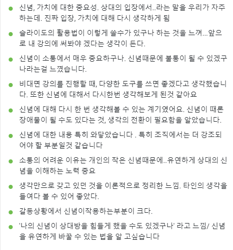 커뮤니케이션 주제로 강의할 때 가장 많이 넣는 모듈을 추렸다.