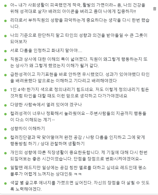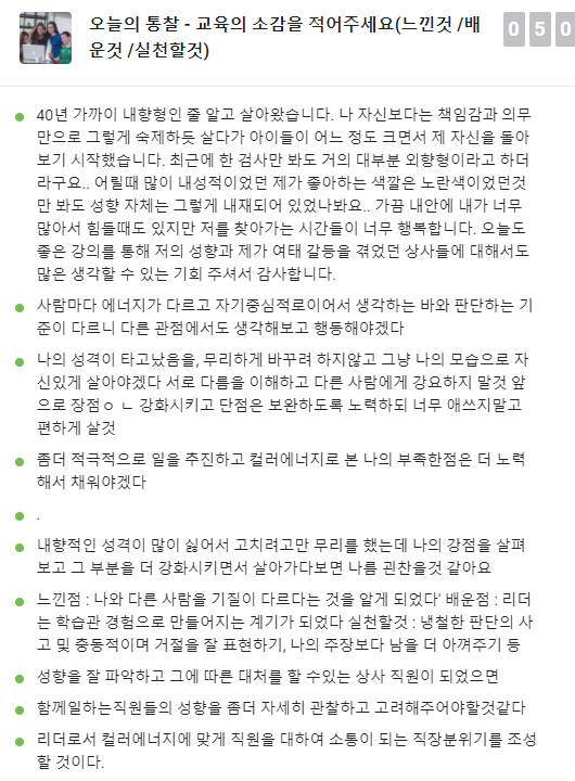 이번 과정은 컬러에너지 진단을 통해 리더 스스로를 인식하는 시간을 갖고