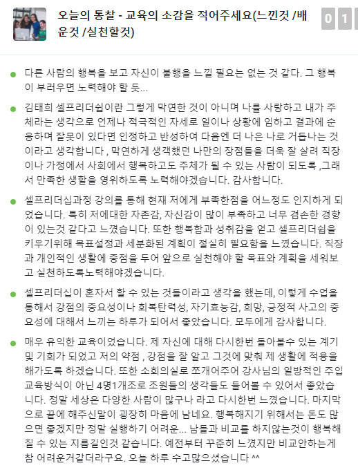 지방에 있는 공기업 직원들이 과정을 신청해 진행하는 셀프리더십 과정은