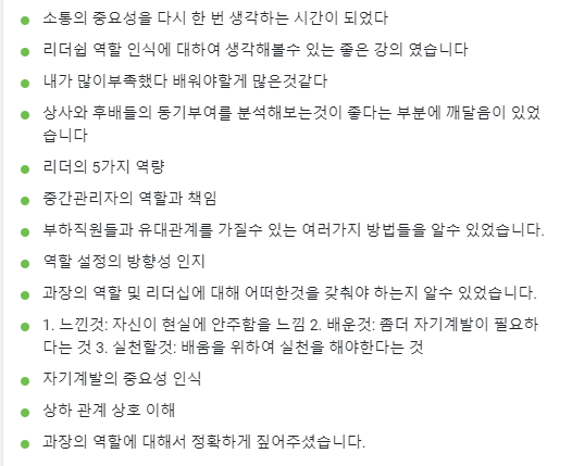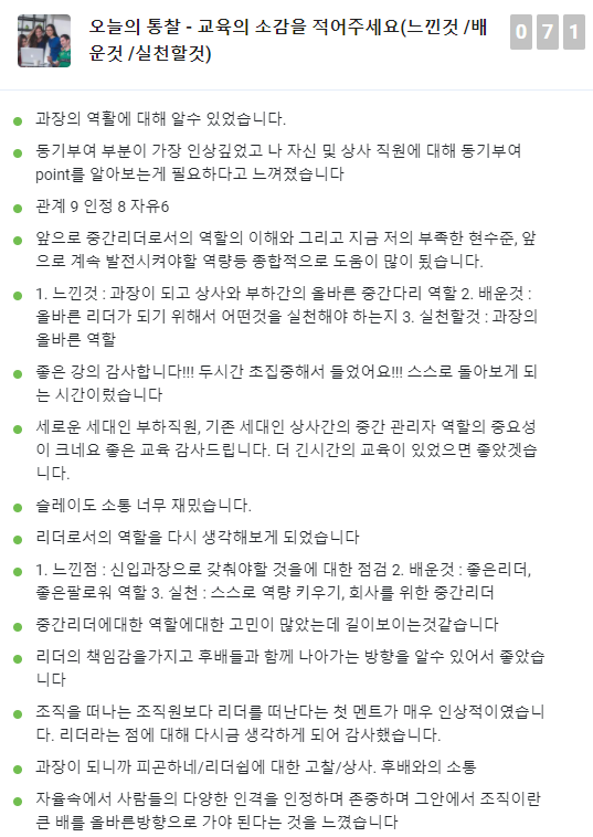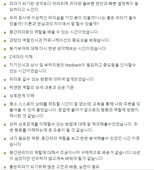 리더로서 많은 것을 생각하는 시간이었다