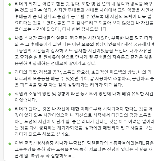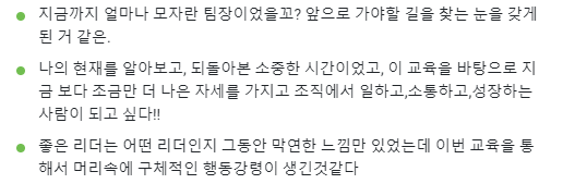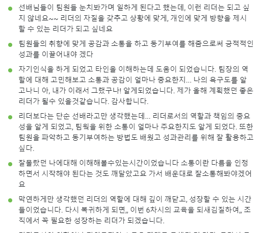 6회차 동안 다양한 주제로 교육생들의 변화와 성장에 도움이 되고자 노력했다