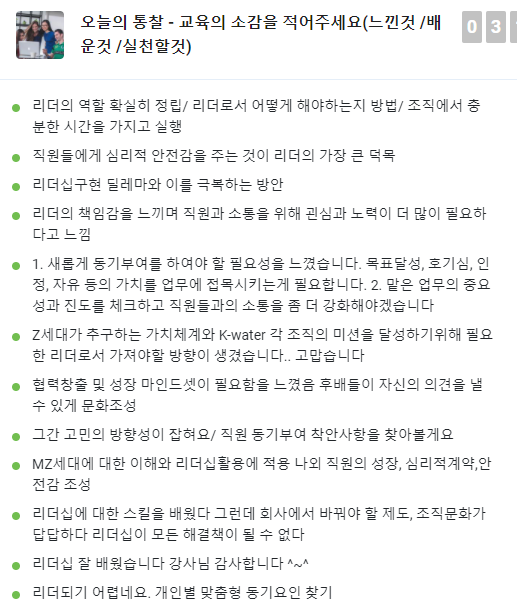 슬라이도로 함께 소통하면서 리더의 생각도 들어보고