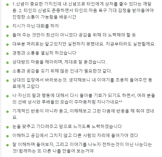 함께 공감하며 대화를 나누면서 자신의 생각들을 나눴다