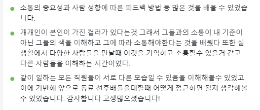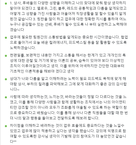 협업하기 위한 다양한 커뮤니케이션 스킬들을 학습하는 시간을 가졌다