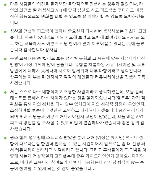 성과와 이어지는 피드백을 연습하는 시간을 가졌다