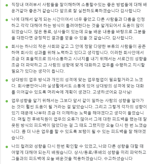 삼성생명서비스 MBTI 진단을 통한 소통역량 향상 과정 강의 3차