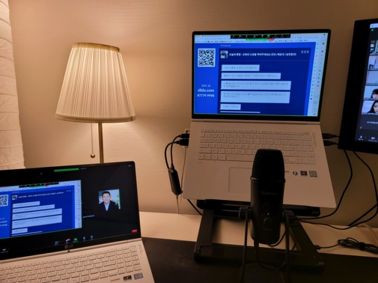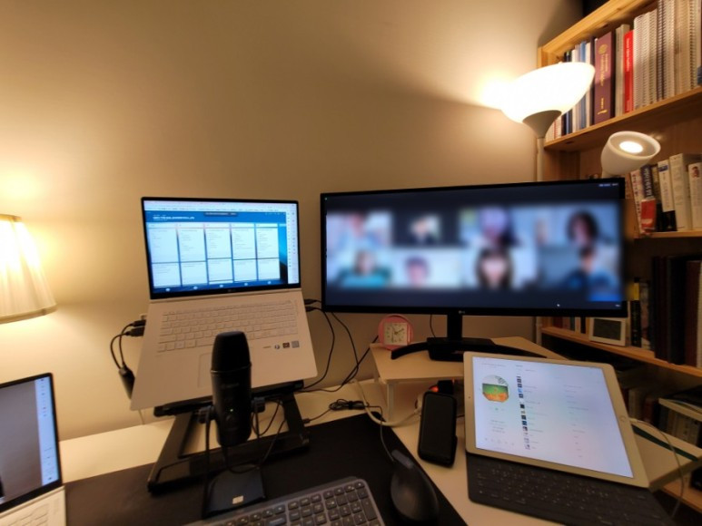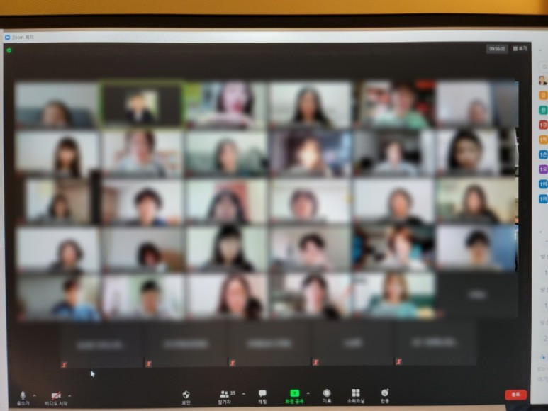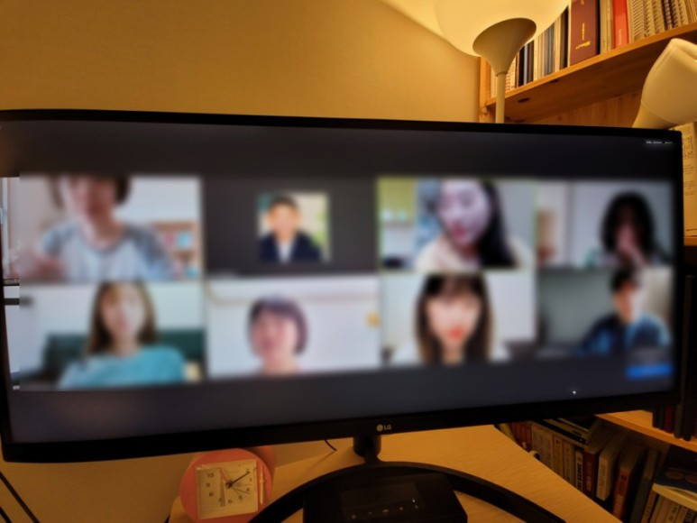 줌 너머 화면으로 보이는 얼굴들이 대부분 밝다.