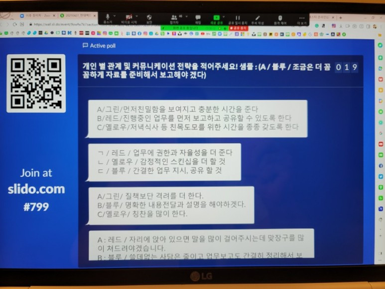 너무나도 일사분란하게 과정에 참여해 주시고 단 한분도 빠짐없이