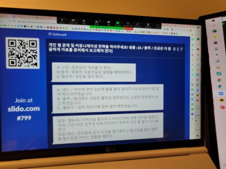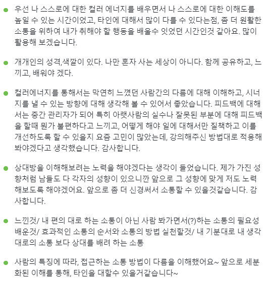 현대백화점그룹 리더 승진자교육, 협업하는 커뮤니케이션 과정, 인사이트 디스커버리 컬러에너지, 비대면 라이브러닝 3차 강의