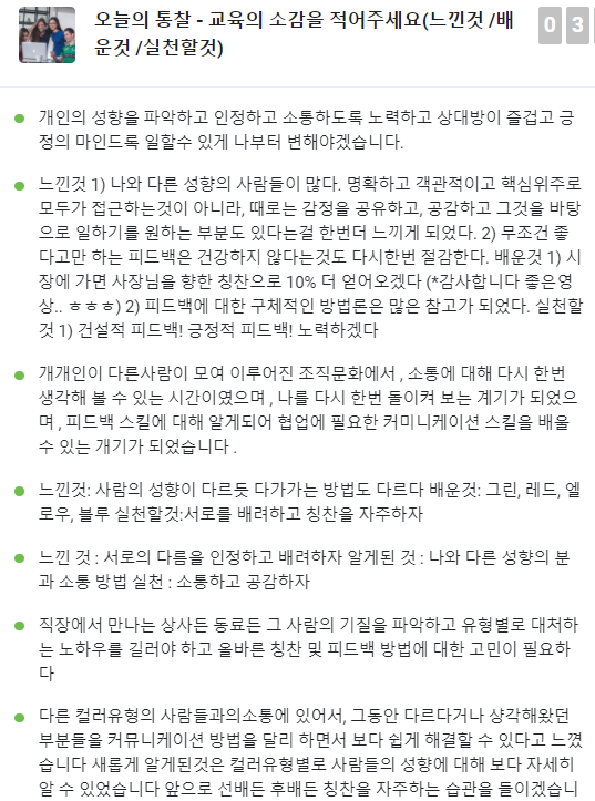 담당자가 시켜서 하는것만이 아닌 스스로의 교육에 대한 열정이
