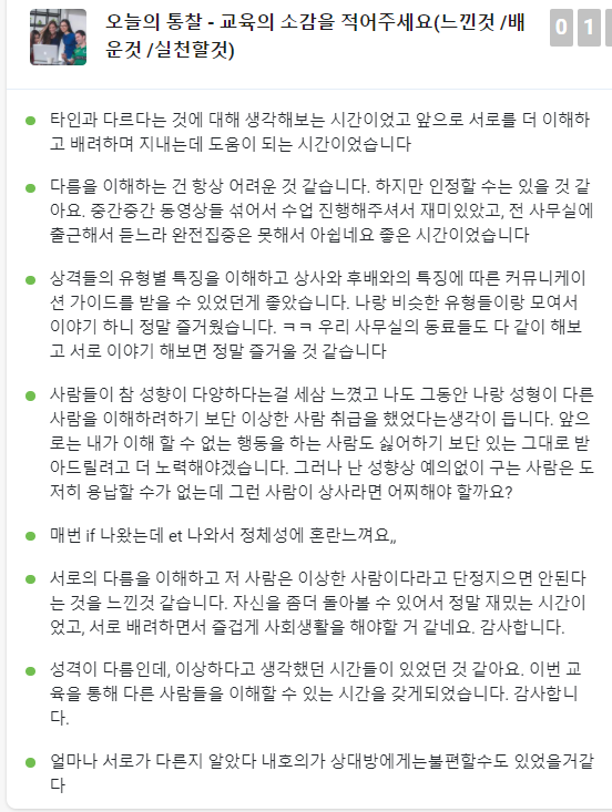 삼성생명서비스 MBTI 진단을 통한 소통역량 향상 과정 강의 3차