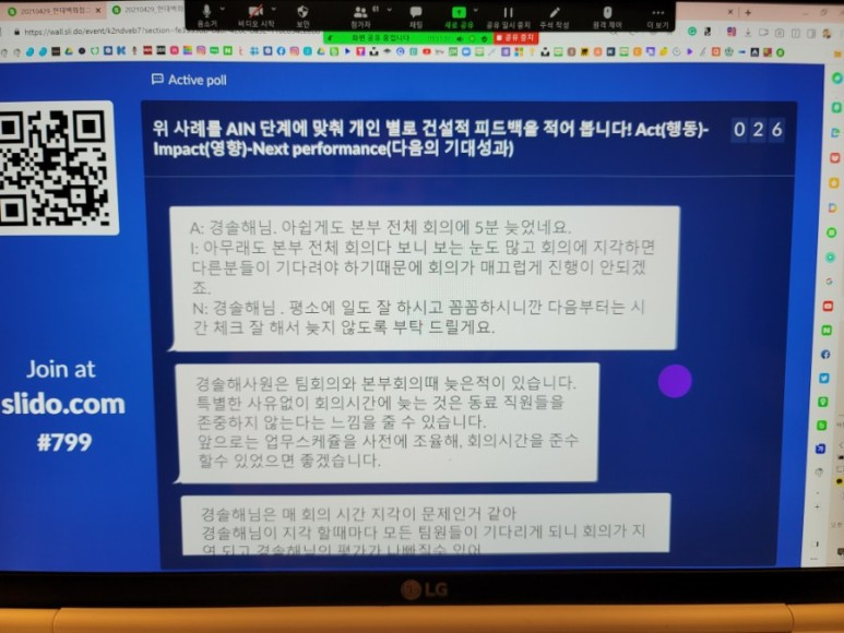 현대백화점그룹 리더 승진자교육, 협업하는 커뮤니케이션 과정 비대면 라이브러닝 2차 강의