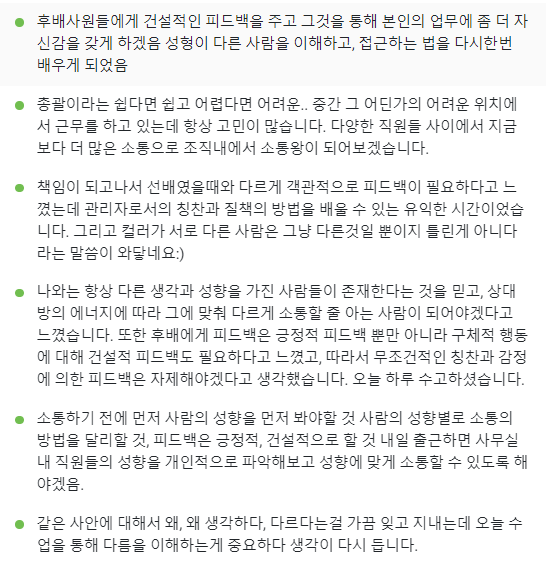 리더로서 어떻게 피드백 해야 하는지에 대한 스킬 학습을 통해