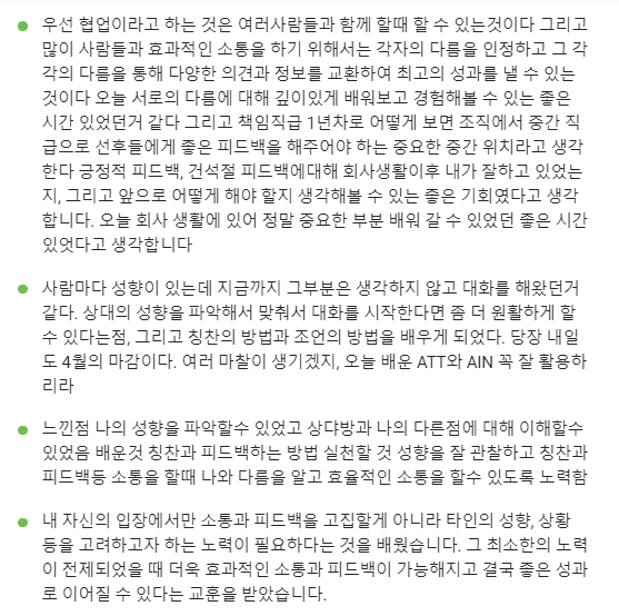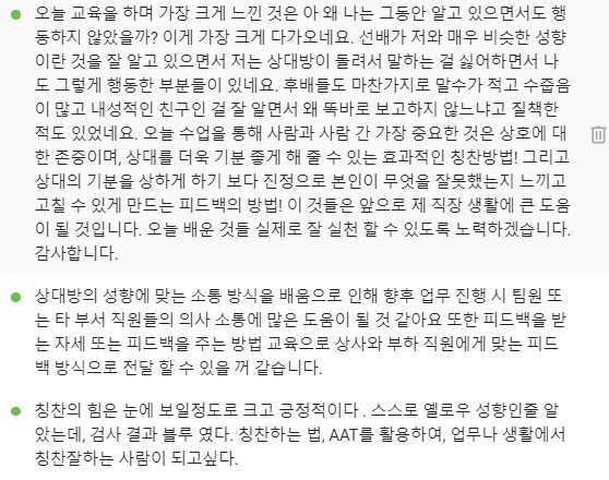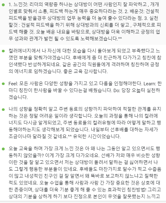 현업에서 실질적으로 적용 가능한 피드백 연습을 진행했다