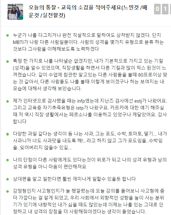 삼성생명서비스 MBTI 진단을 통한 소통역량 향상 과정 강의 3차