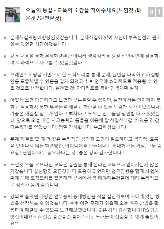 조금 틀리고 잘못되더라도 함께 토의하면서 최고의 자료를