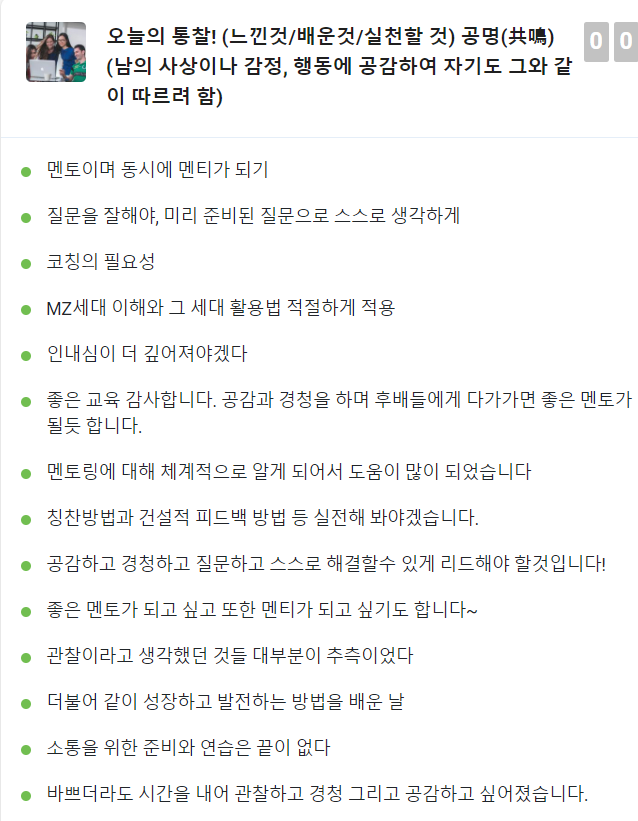 다양한 코칭스킬을 학습하면서 직원들에 대한 적극성과