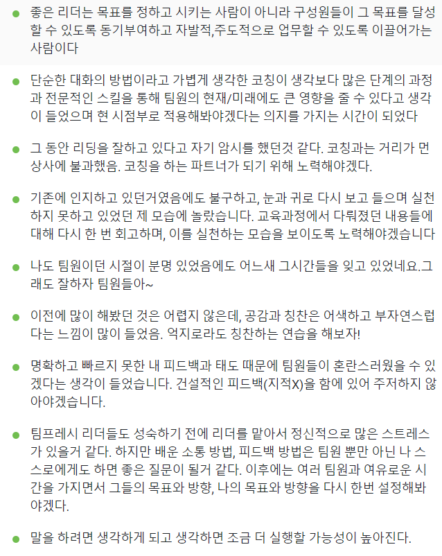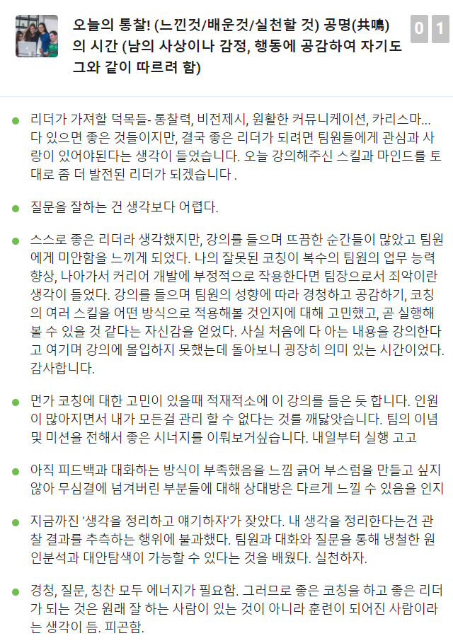 코치가 되기로 하고 코칭리더십 과정을 진행했다