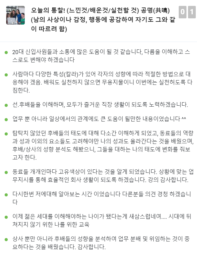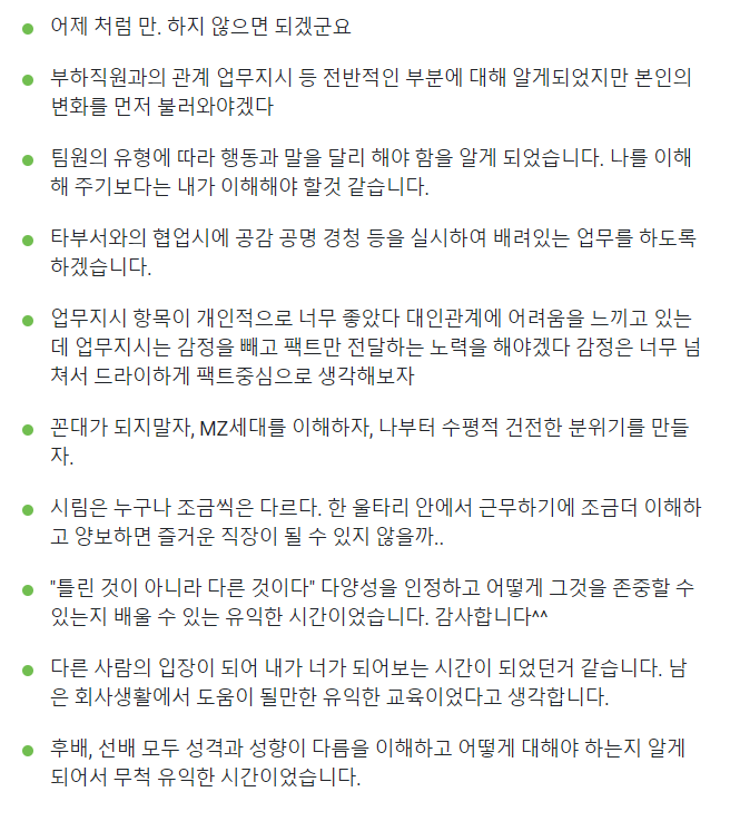 이번 과정은 리더들이 업무지시를 할 때 어떤 어려움을 갖고 있는지