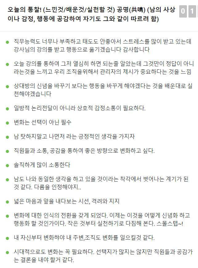 이번 교육은 변화관리 리더십으로서 실제 다양한 경험을