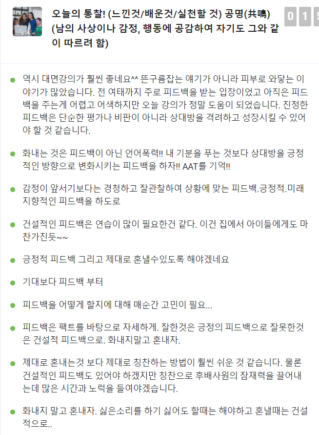 피드백에 따라 일에 대한 성과가 크게 달라지기 때문에