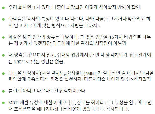 한국은행의 많은 분들이 MBTI 워크숍을 통해 팀워크와 소통과 공감을
