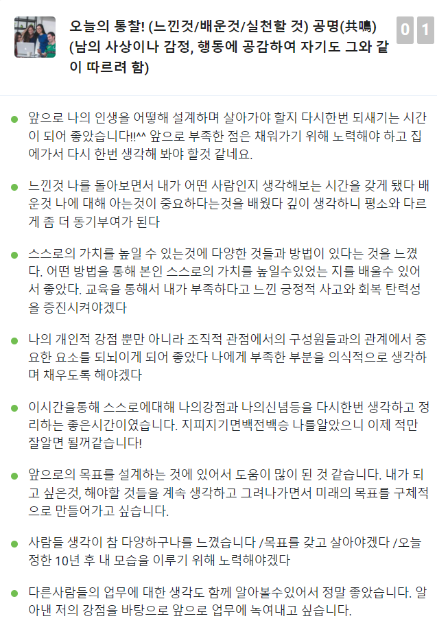 자신의 미션과 비전을 찾고 조직안에서의 방향성과 일치하는 작업을 진행했다.
