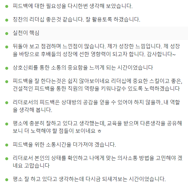 리더의 피드백 스킬은 실제 업무를 실행하는데 있어