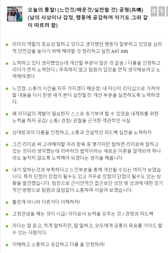 더불어 리더의 핵심 역량은 무엇인지에 대해서도 고민하는 시간을 가졌다.