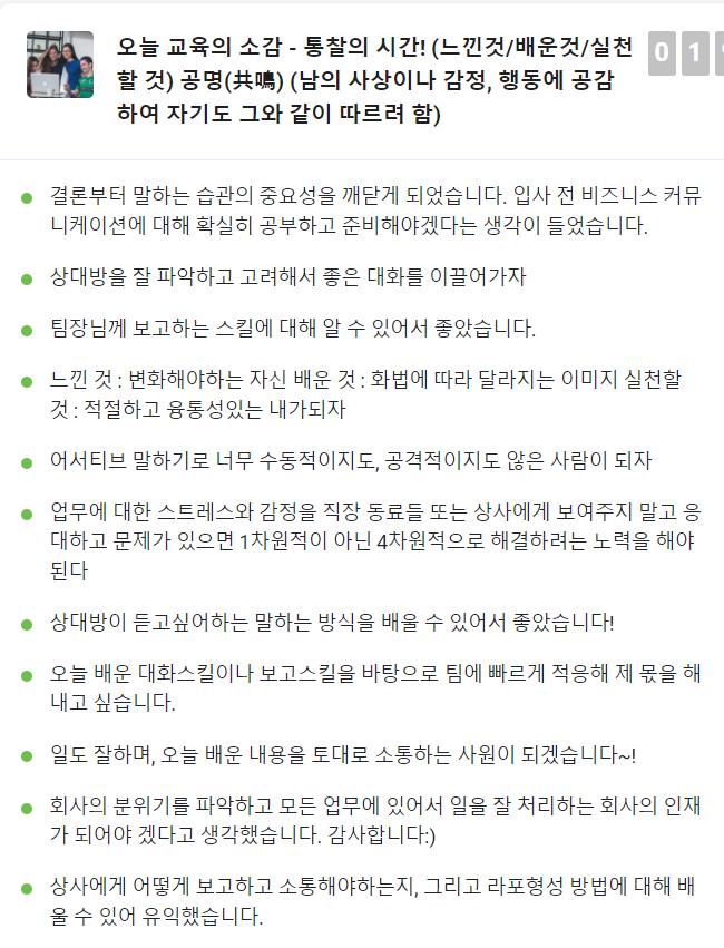 업무보고를 하는 스킬을 배우는 과정으로 업무보고할 때의 라포스킬