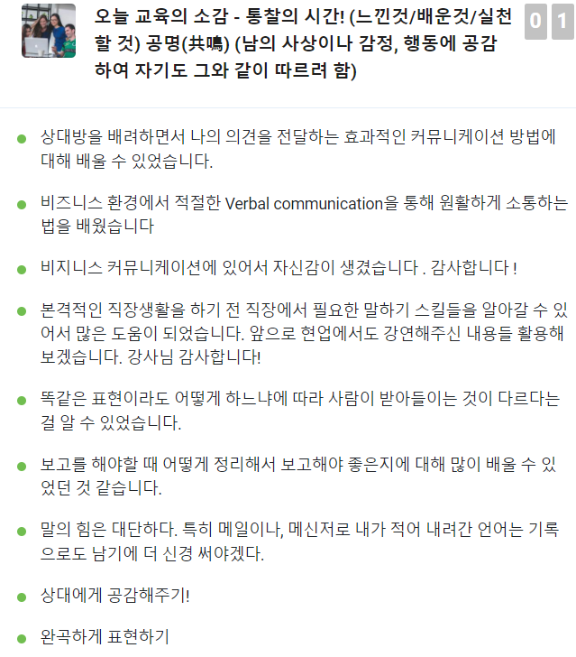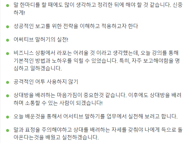 결국 업무보고는 실습이 중요하기 때문에 학습 후 실제 역할연기를