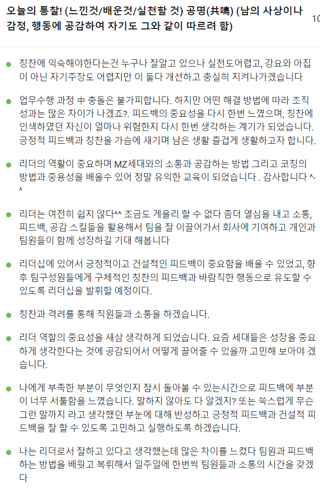 각 모듈마다 다양한 질문을 통해 팀장들의 생각을 함께 나누고