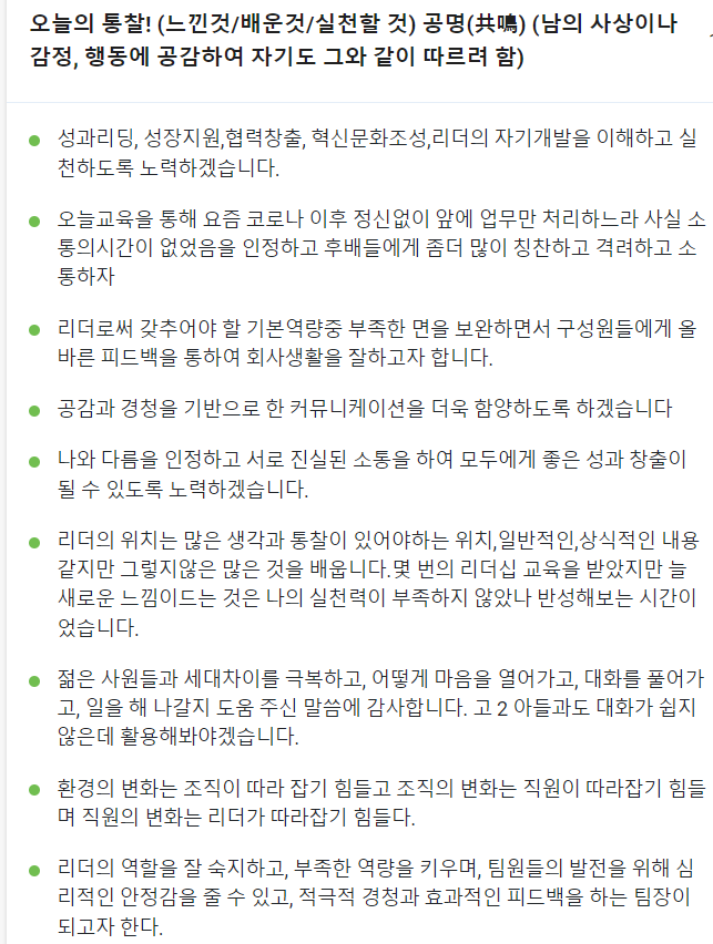 교육을 받고 바로 당장 변하는것보다는 리더로서 스스로 인사이트를 얻고