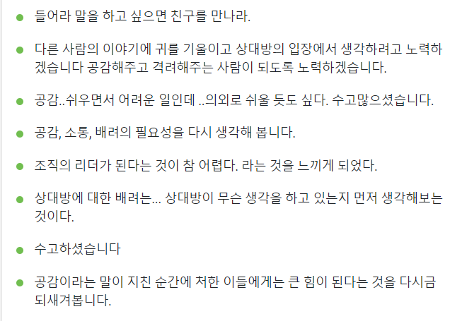 관계와 소통에 대해서 본질적으로 소통할 수 있는 방법들을 학습했다.