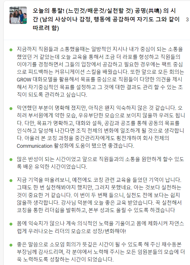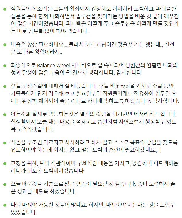 임원들의 코칭역량 향상과 함께 스킬을 높이기 위한 교육이었는데