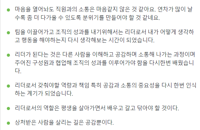 성실하게 자신의 성장을 위해 학습을 하는 리더들 앞에서