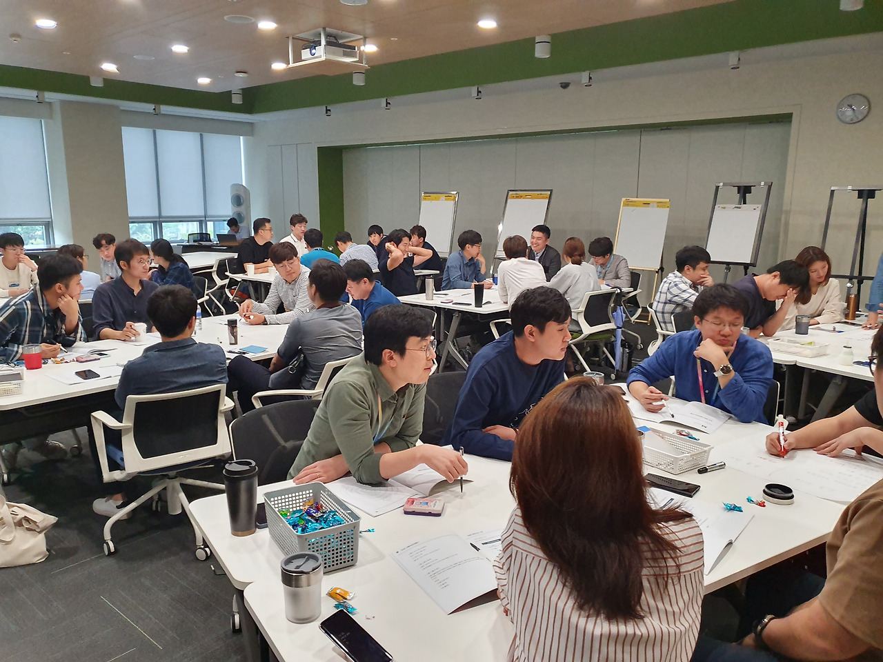 국내 최대의 세계적인 기업인 S전자 인재개발원에서 진행하는 입문교육인 박사 경력, 신입사원들을 대상으로 비즈니스 커뮤니케이션 교육이 진행되었다.