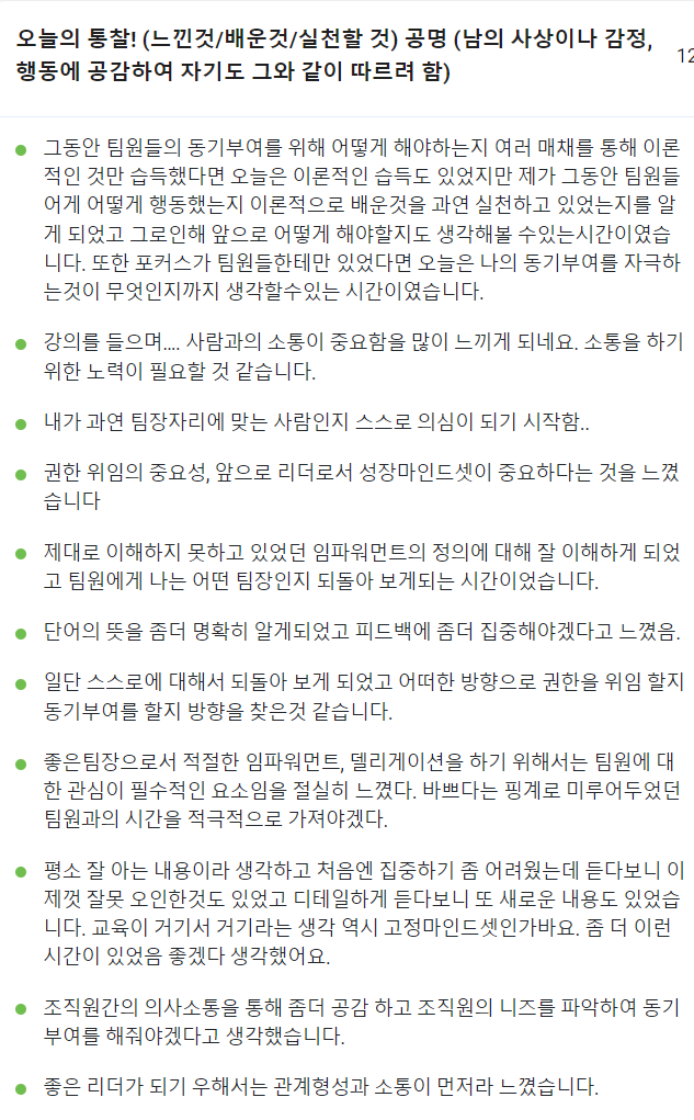 농심 팀장리더십 과정 9차 마지막과정, 리더십 인사이트 과정 강의