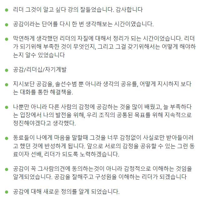 이번 특강에서도 리더의 역할과 책임, 리더의 핵심역량을 중심으로